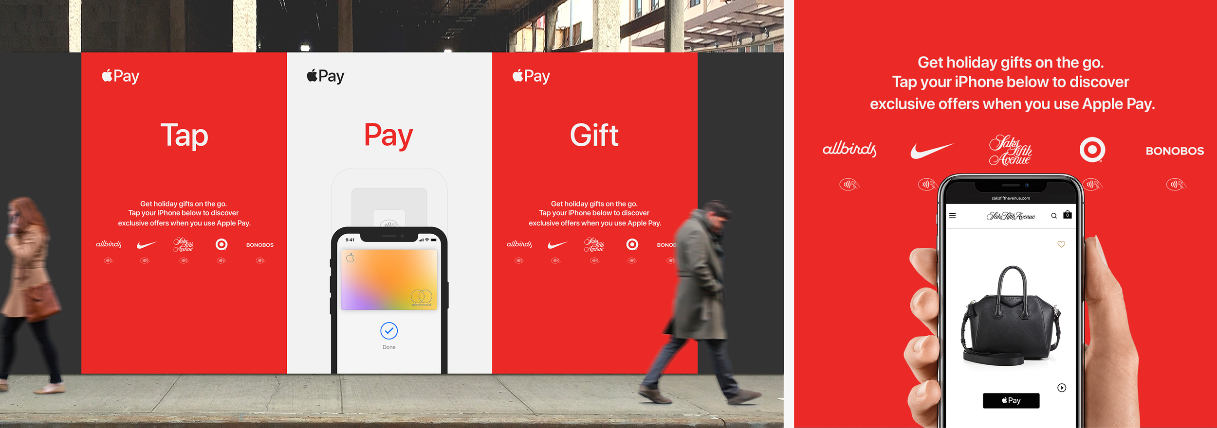 Tasked with making Apple Pay the go-to way to pay for gifts for the holiday season, the team decided to lean on a simple behavior that people have gotten used to—Tap. Tap-to-pay was a familiar concept for most consumers so we built on it, creating a program that incentivized new Apple Pay users with exclusive deals at the places they’re already shopping. With the simple message ‘Tap. Pay. Gift’ we demonstrated how simple, easy, and secure holiday shopping can be.